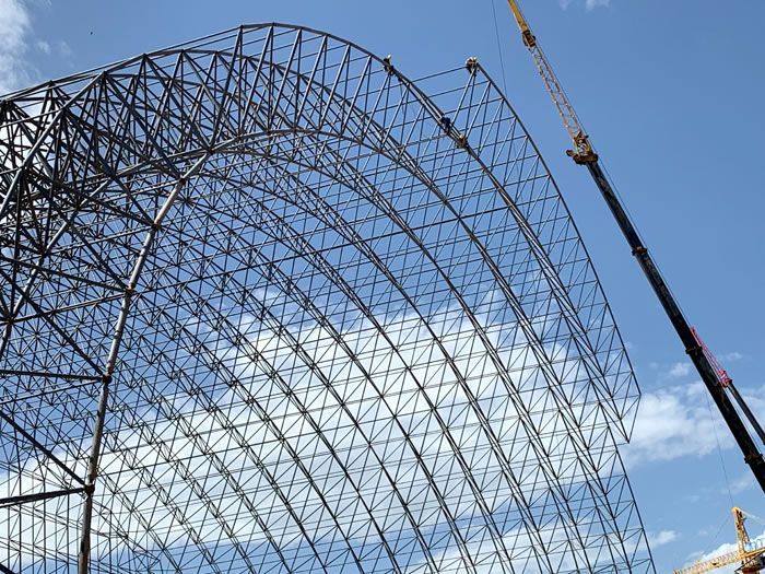 (2)网架加工前应对现场尺寸进行复测,确认无误后方可进行加工、安装;网架制作、运输、安装应遵守《空间网格结构技术规程》JGJ7-2010、《钢网架巩义螺栓球节点》JG/T 10-2009、《钢网架巩义螺栓球节点用高强度螺栓》 GB/T 16939-2016、《巩义钢结构巩义工程巩义施工规范》 GB50755-2012、《巩义钢结构巩义工程施工质量验收标准》 GB50205-2020。